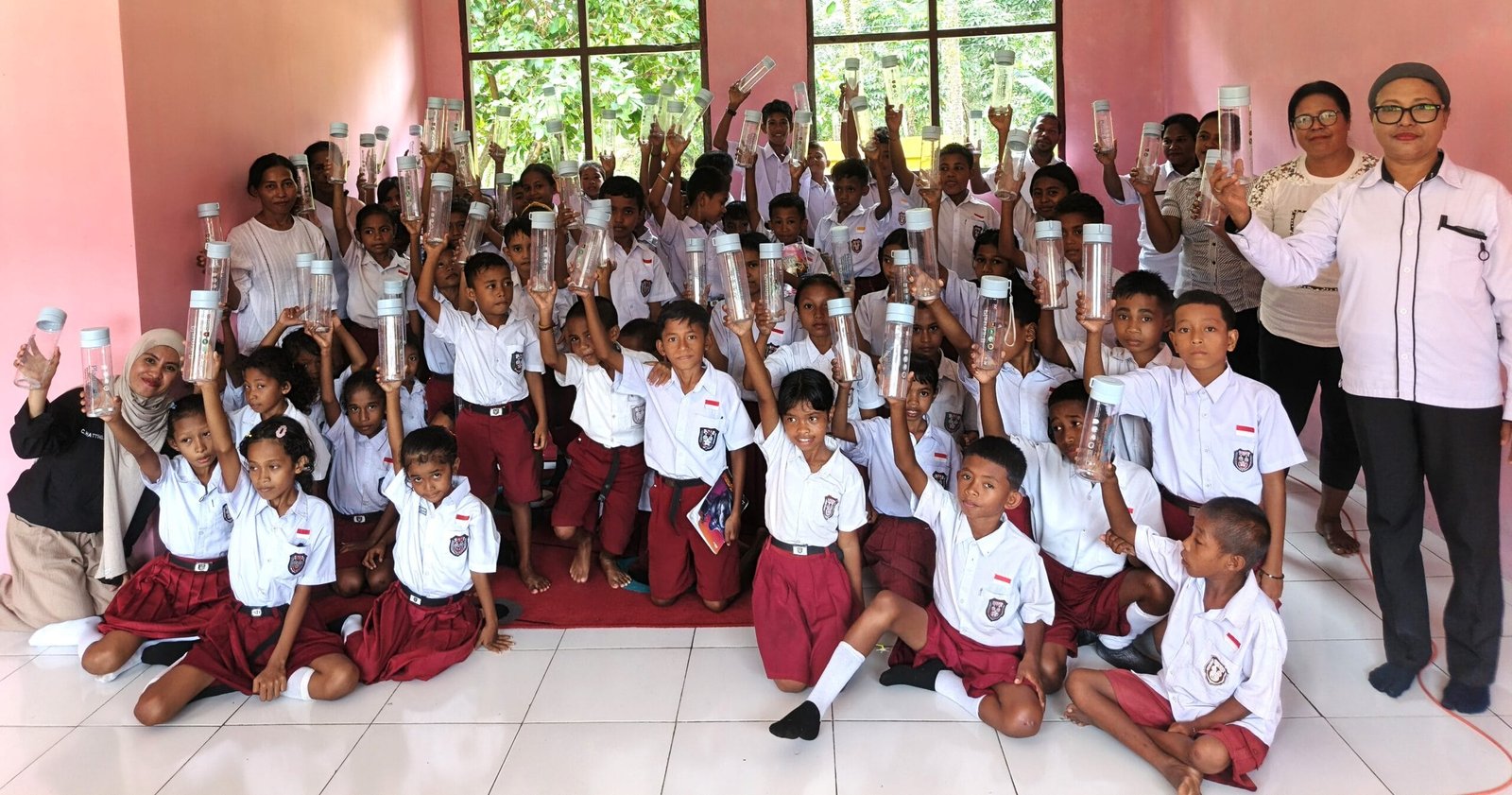 Kurangi Sampah Plastik Sekali Pakai, Program Plasma-B Gelar Edukasi, Pembagian Tumbler, Dispenser dan Galon Guna Ulang di SDN 250 Maluku Tengah